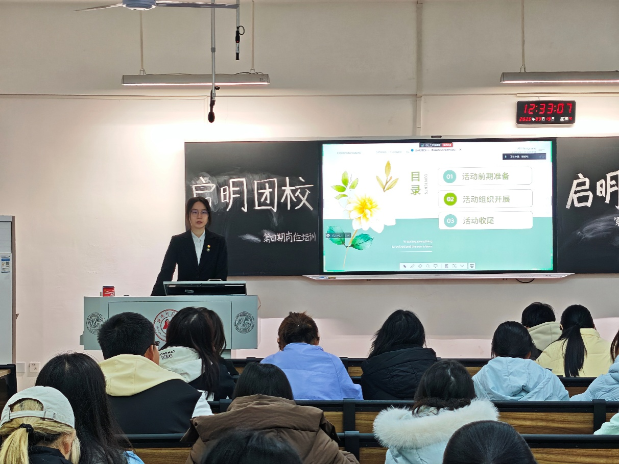 (通讯员 李想 范悦怡)3月19日中午,地理科学学院(以下简称“地科院”)于桃花坪校区实训楼201教室开展启明团校第四期岗位培训——组织活动经验分享。此次培训由2023级土地资源管理专业龚妍主讲,青发部干事李佳悦主持,“地科院”启明团校岗位培训班全体学员参与。