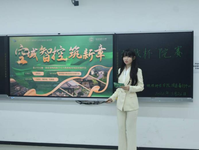 各参赛团队通过PPT展示,全面呈现项目研究背景、技术路线、创新亮点及应用前景,作品主题涉及低空经济、茶园AI大模型决策管理系统、乡村振兴等内容,充分展现地科院学子紧扣社会热点、解决实际问题的学术担当。评委围绕项目创新性、科学性、实用性、可行性及现场答辩表现五个维度进行综合评分。