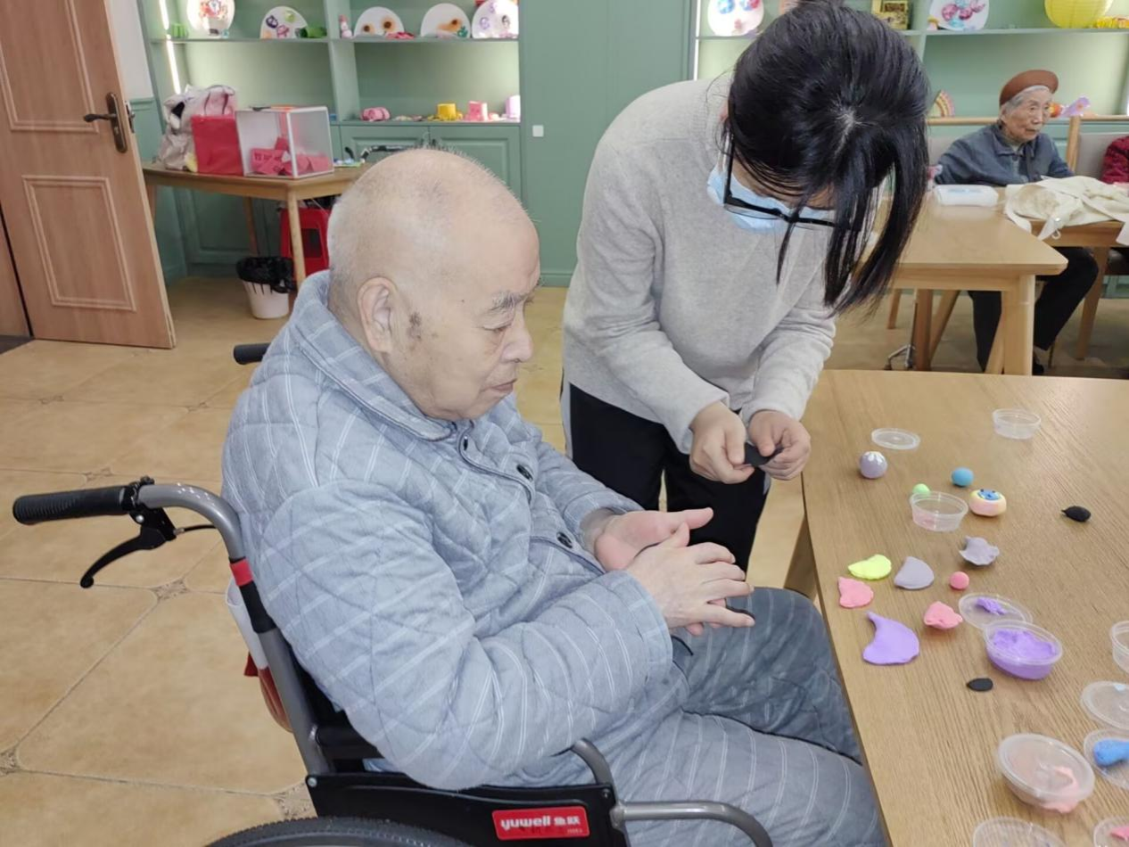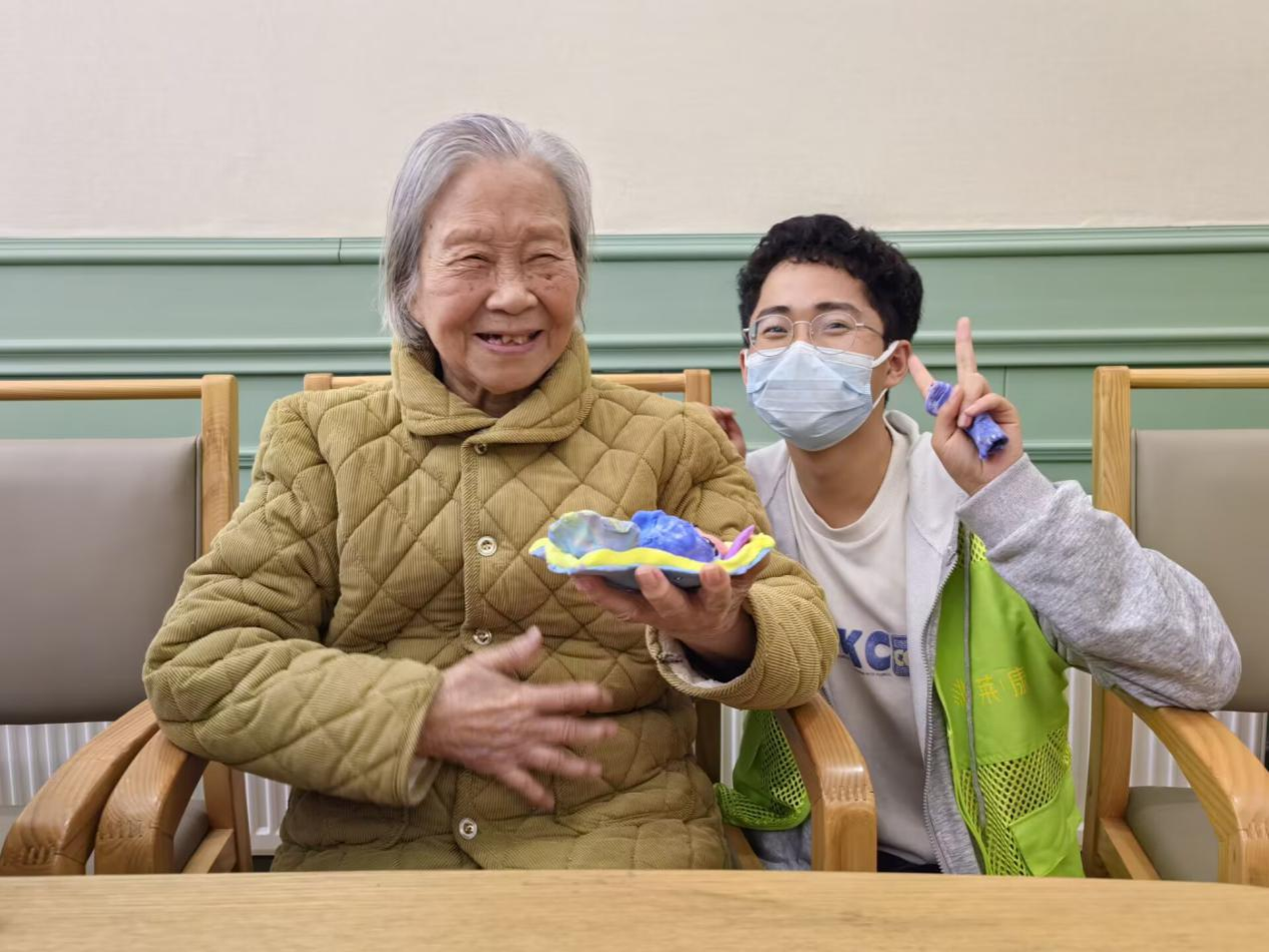 活动开始前,负责人提前告知志愿者此次活动的内容并准备好所需材料。活动当天,负责人将材料分发给志愿者并讲解注意事项。志愿者来到老人身旁,与老人两两结为一组,向老人介绍活动的手工内容,随后与老人一起制作粘土青团。活动期间,志愿者与老人保持互动,交流家常,同时关心老人的身体状况。活动结束后,志愿者与老人合影留念。
