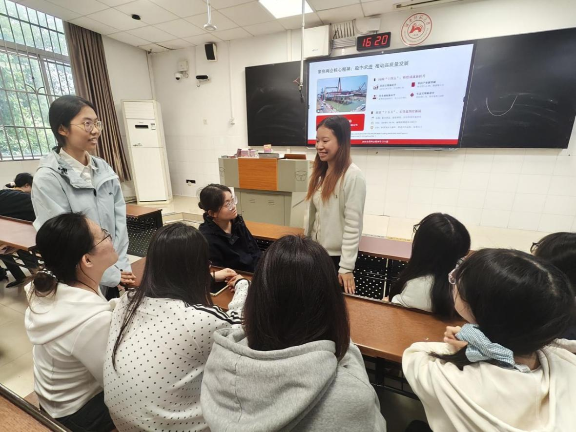 活动伊始,小组成员一同观看了十四届全国人大四次会议外交主题记者会的视频。随后,主讲,围绕“回顾‘十四五’辉煌成就新跃升”和“展望‘十五五’宏伟蓝图绘新篇”两个方面,带领组员深入剖析“两会精神”这一伟大精神的时代内涵。在讨论环节,小组成员积极分享自己对“两会精神”的见解。最后一致认为,青年了解两会精神,不能仅仅停留在学习层面,更好在平时付出行动。