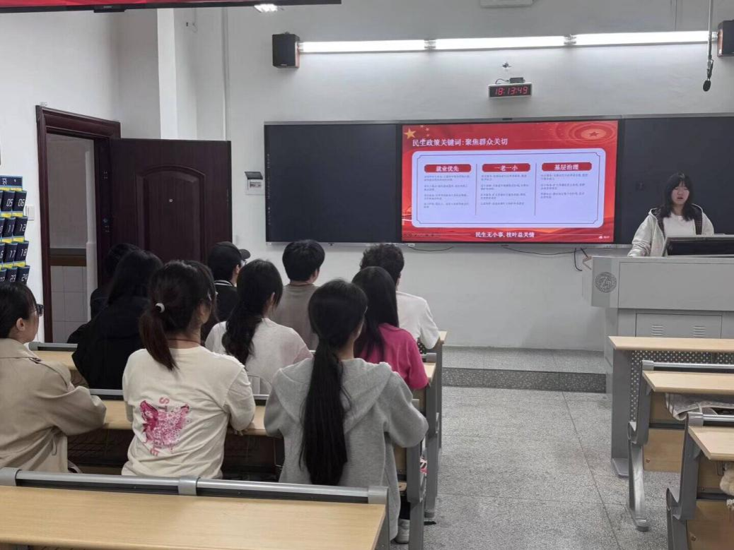 活动伊始,主持人通过PPT介绍了2026年全国两会的概况,解读政府工作报告中多个民生政策关键词,并结合实例具体感受基层民生现状与政策落地成效;同时,通过对比两会民生目标和基层现状,梳理在就业、养老、教育、医疗领域的现实差距;最后小组成员围绕“民生政策如何更好落地”“青年在民生建设中的作用”等议题展开交流,提出看法与建议。