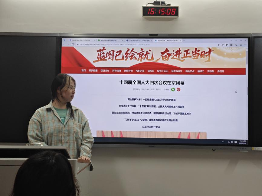 (通讯员 唐杨慧 曾添和)地理科学学院青马小组第十五组于4月10日下午在达美楼201教室组织开展了专题理论学习活动。此次活动围绕“触摸民生温度,感悟两会精神”主题,通过集中学习与实地调研相结合的方式,旨在引导组员们加深对2026年全国两会精神的理解与认识。