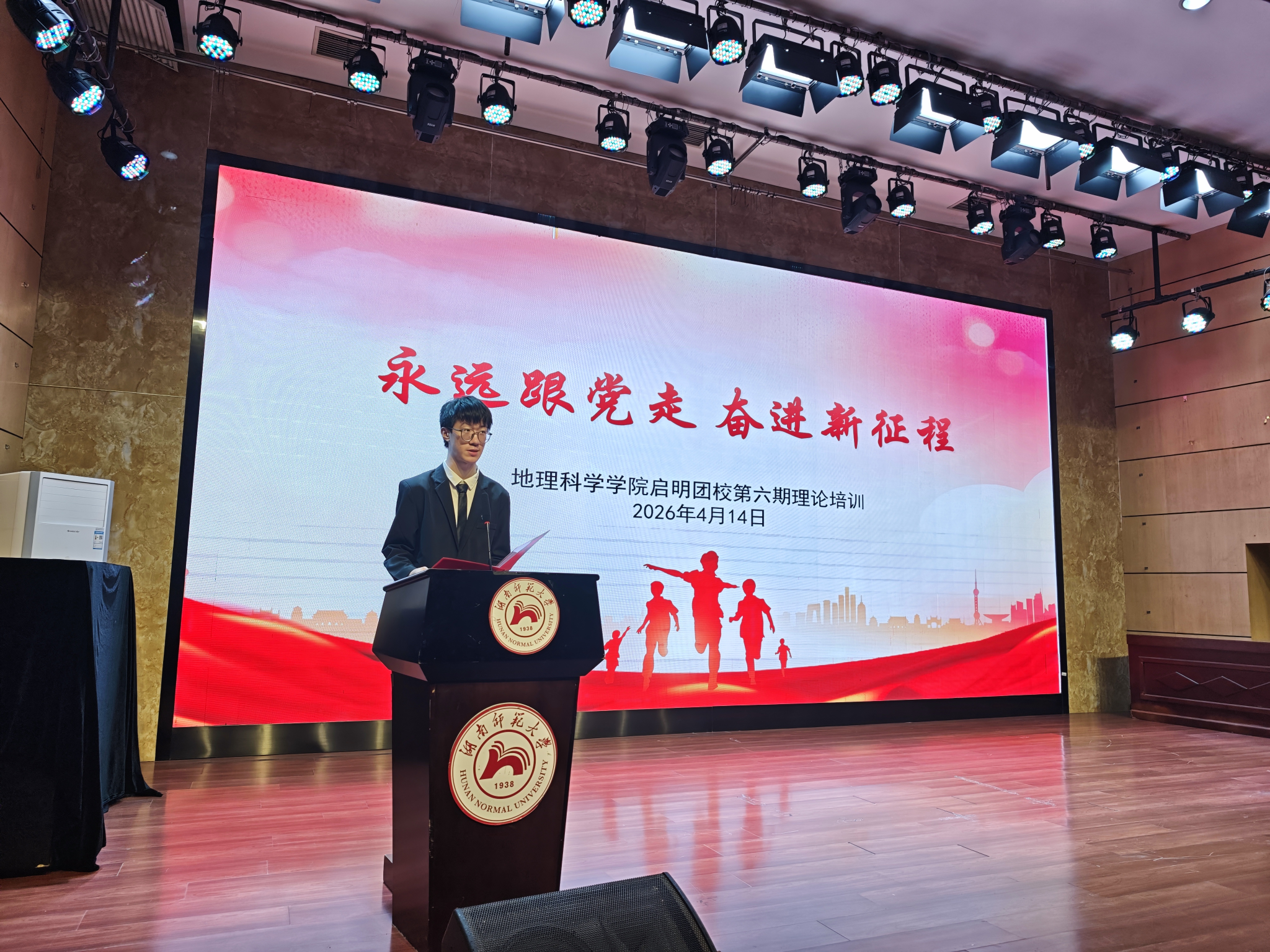 (通讯员 杨嘉鑫 范悦怡)4月14日中午,地理科学学院(以下简称“地科院”)启明团校第六期理论培训在桃花坪校区树达楼113报告厅举行。此次培训由院学生会指导老师李沅朋讲解,青发部干事李想主持,“地科院”启明团校理论培训班全体学员参加。