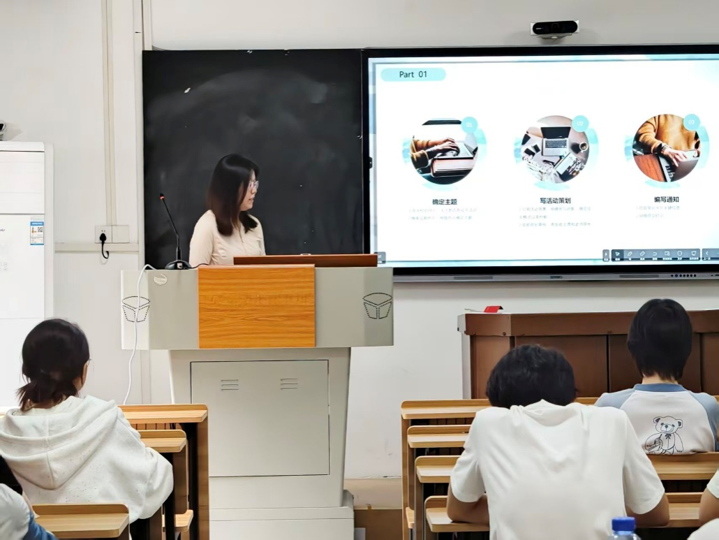工作技能培训环节中,学发部部长曾薛雨柔围绕征文活动组织与讲座举办技巧进行了系统讲解,内容务实、案例生动,使与会成员在活动策划与执行方面收获了切实可行的方法与经验。各部门部长随后依次对近期工作进行了总结回顾,并就下一阶段重点任务作出汇报与规划。