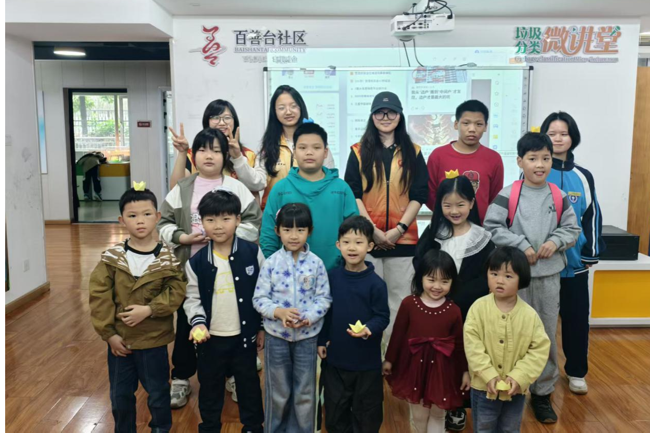 志愿者们提前到场准备所需活动材料,然后组织小朋友们有序进行签到。志愿者设计了“神奇声音猜猜猜”环节作为热场活动,将准备好的小奖品奖励给回答正确的小朋友们,在趣味互动的同时激发了小朋友们对岛屿形成过程的好奇心。主讲人介绍了影响岛屿形成的各种地理现象,进而给小朋友们讲解在600万年的时间里,一座岛会发生什么样的变化。绘本讲解结束后,志愿者带领小朋友们学习折纸小皇冠和小青蛙,在锻炼动手能力的同时学习了岛屿上的古生物与生态系统的演化。活动结束,志愿者与小朋友们合影留念并打扫了场地。